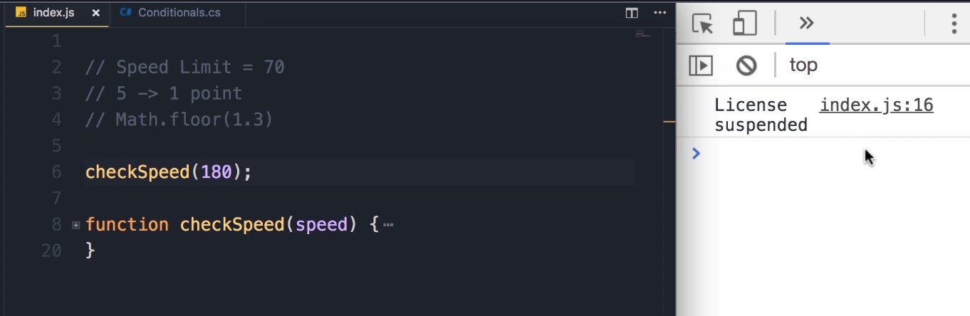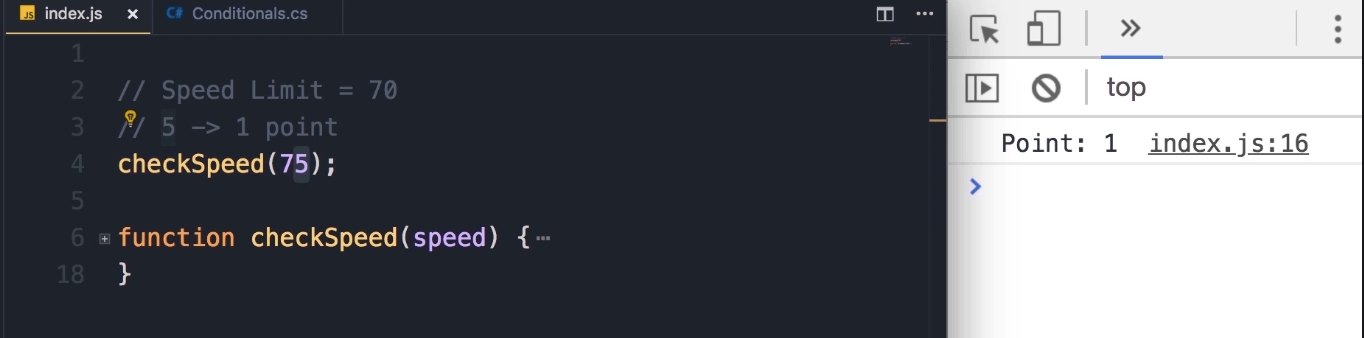 There is another way to write this program. Instead of having two separate console.log statements, we can do something like this:
