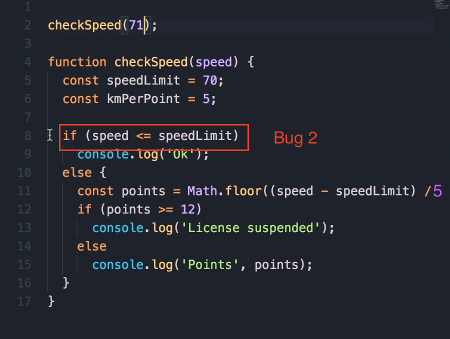 if (speed < speedLimit)toif (speed <= speedLimit).