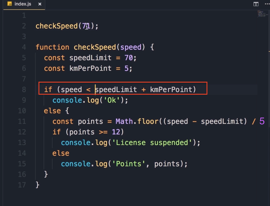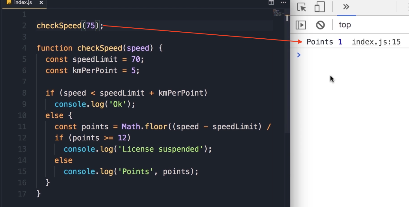 const points = Math.floor((speed - speedLimit) / kmPerPoint);
