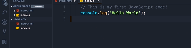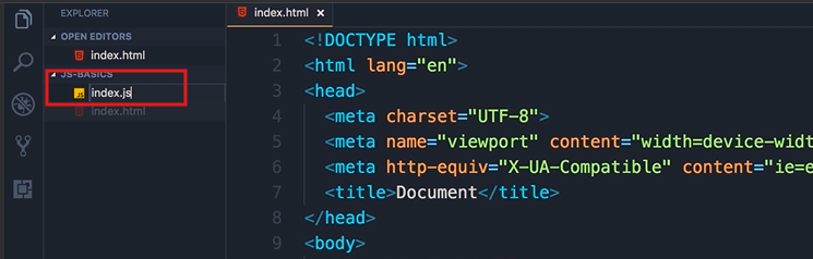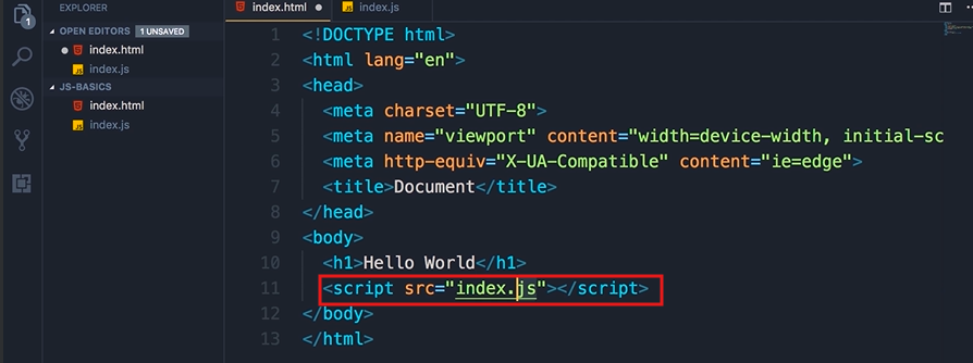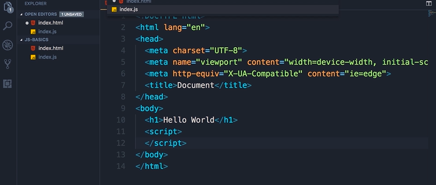 cltrl+S), go back toindex.htmlfile. Since all our JavaScript code is in a separate file we need to reference that file here inindex.html -