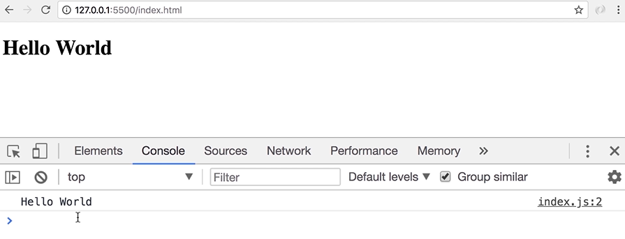 We can still see the Hello World message in the console of the developer tools and that confirms that our code is still working.