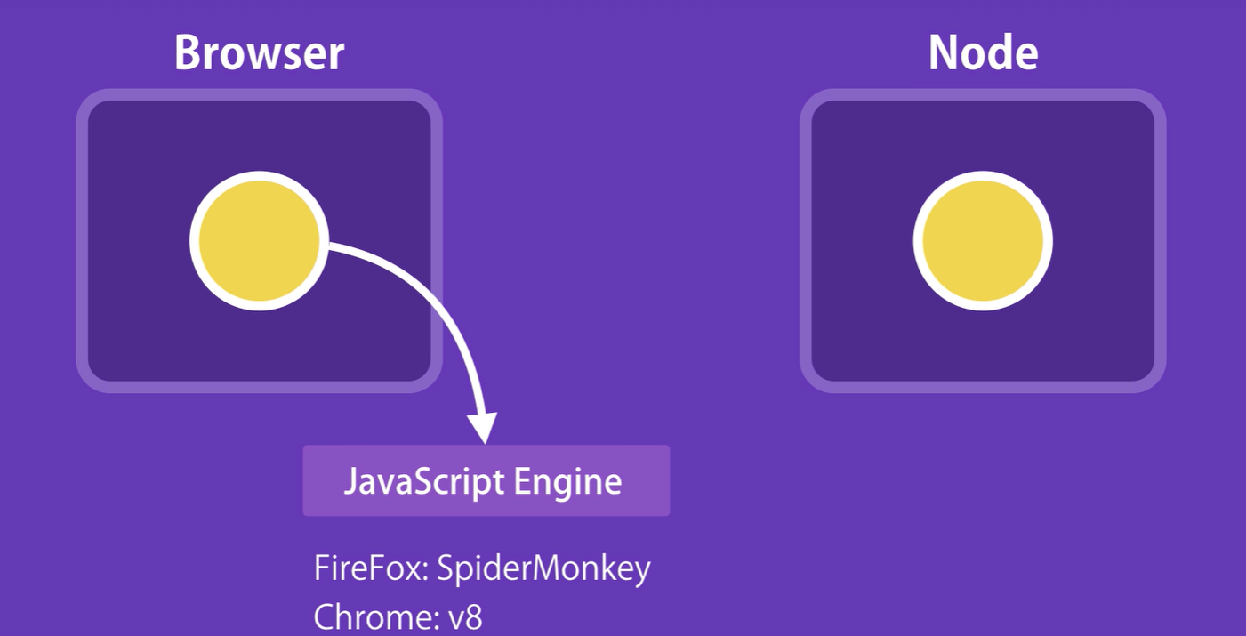 Now with this we can run JavaScript code outside of a browser, so we can pass our JavaScript code to Node for execution.